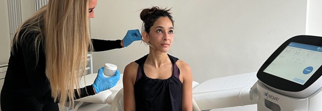 Unlike older ultrasound technologies that penetrate more deeply (and risk damaging fat pads), Sofwave is shallow enough to preserve volume while firming skin. There is no downtime, no bruising, and no need for anaesthesia beyond topical numbing cream. This makes it ideal for the lower face, jawline, neck, and brow, the areas most prone to sagging and which we notice first.